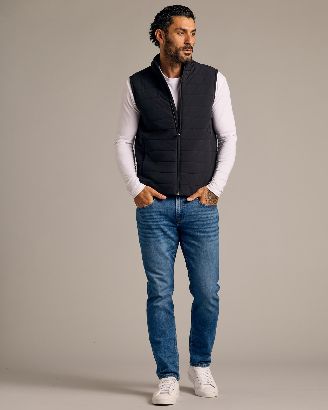 Our favorite transitional piece, perfect to fight chilly mornings and afternoon office AC. It’s lightweight, packable, and layers just as well over your gym gear as it does your business casual. Plus, it has ultra sleek fleece-lined pockets along the side seam for keeping your hands (or your essentials) cozy.