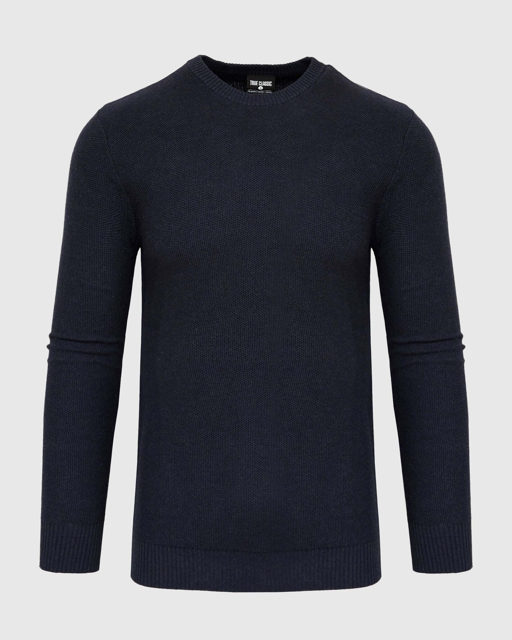 The perfect light layer for those between-seasons days and nights. Textured cotton sweater with added stretch for a slim fit with relaxed feel. Wears great when paired with our classic crew tee underneath.
