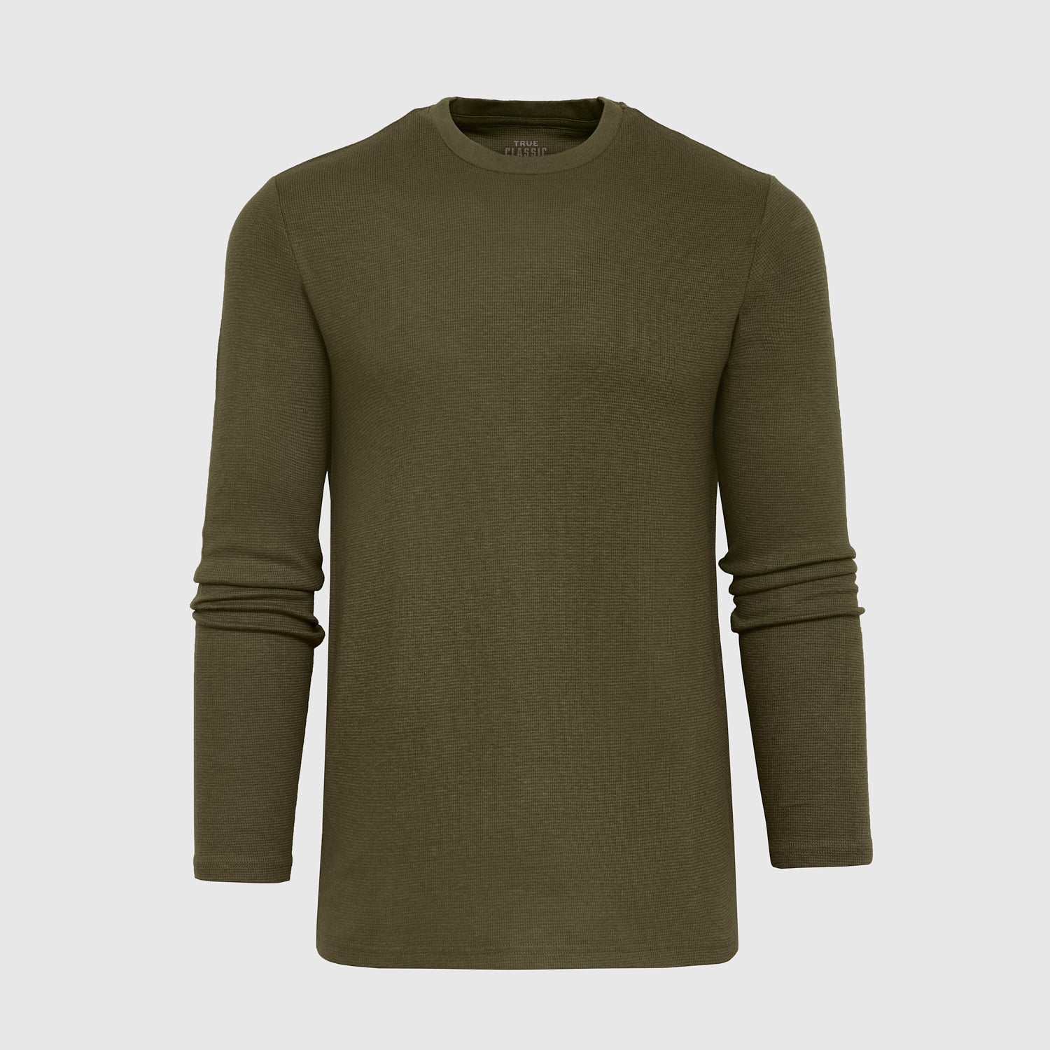 Military Green Waffle Long Sleeve Crew Neck